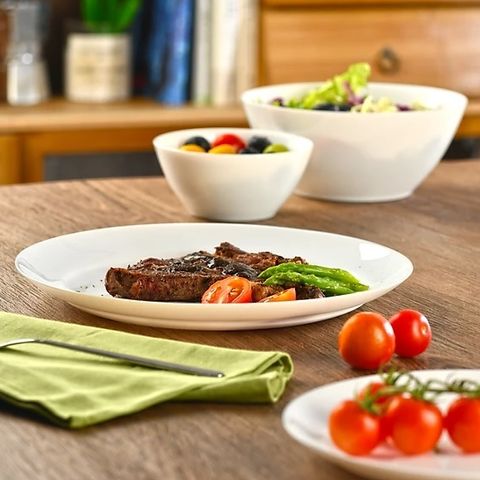 - Với màu trắng tinh khiết, thiết kế theo kiểu dáng hơi vát về đáy nhưng không kém phần sang trọng và tinh tế. Với dòng sản phẩm này, phòng ăn nhà bạn sẽ trở nên trang nhã mà không kém phần tươi mới, giúp cho cả nhà bạn có được những bữa ăn ngon miệng và đẹp mắt.