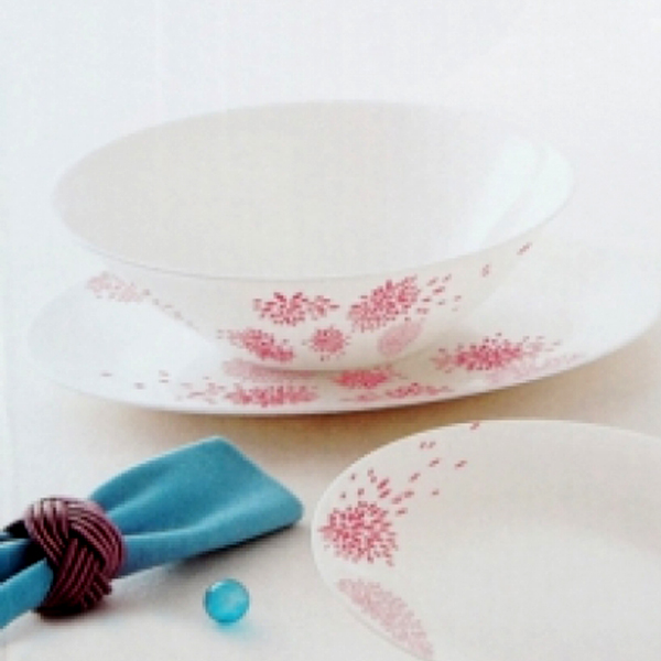 - Với màu trắng tinh khiết, thiết kế hiện đại với hoa văn hoa nhỏ tinh tế đảm bảo cả tính thẩm mỹ và sự tiện dụng cho bạn. Với dòng sản phẩm này, phòng ăn nhà bạn sẽ trở nên trang nhã mà không kém phần tươi mới, giúp cho cả nhà bạn có được những bữa ăn ngon miệng và đẹp mắt.