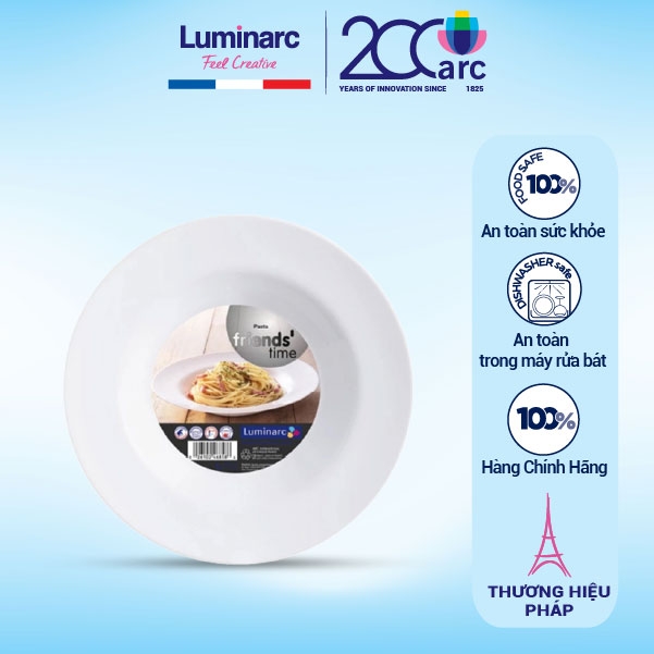 - Dòng Luminarc Friend’s Time gây ấn tượng ngay từ cái nhìn đầu tiên với thiết kế tối giản - hiện đại - đầy phong cách. Với màu trắng tinh khiết, giúp bàn ăn trở nên tinh tế và cuốn hút hơn. Form dáng được bo tròn mềm mại, tạo cảm giác hài hòa, cầm chắc tay và dễ bày biện trong mọi không gian. Đĩa sở hữu lòng sâu và viền cong nhẹ, giúp đựng món nước, món trộn hay món nóng đều đẹp mắt, hạn chế tràn và giữ món ăn gọn gàng.